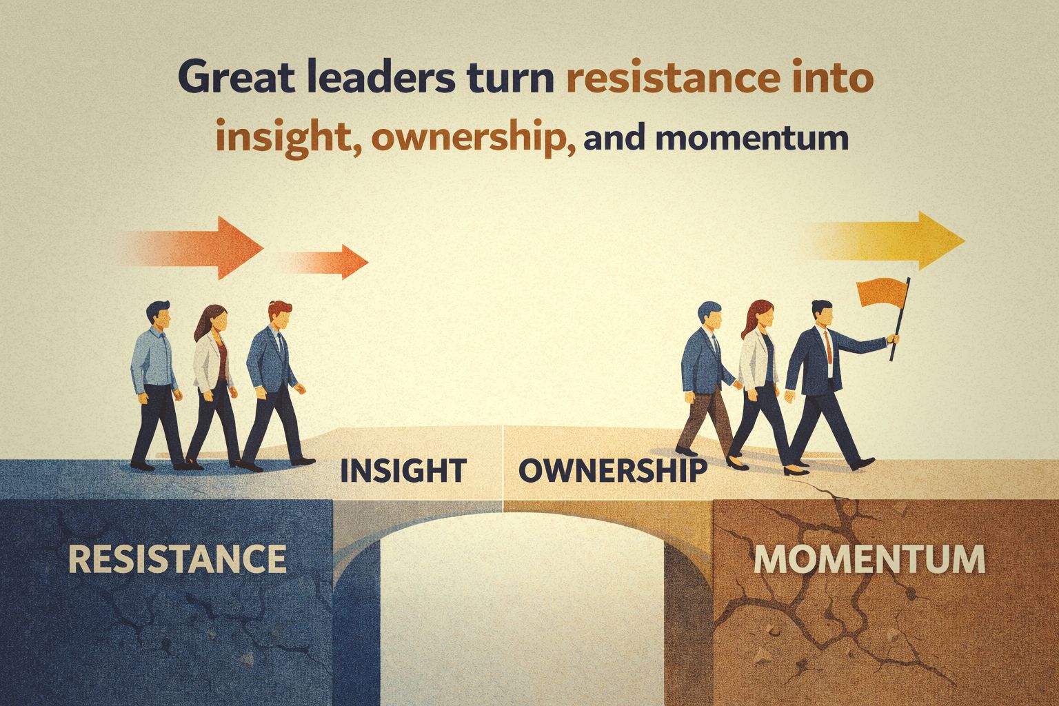 ๐†๐ซ๐ž๐š๐ญ ๐ฅ๐ž๐š๐๐ž๐ซ๐ฌ ๐ญ๐ฎ๐ซ๐ง ๐ซ๐ž๐ฌ๐ข๐ฌ๐ญ๐š๐ง๐œ๐ž ๐ข๐ง๐ญ๐จ ๐ข๐ง๐ฌ๐ข๐ ๐ก๐ญ, ๐จ๐ฐ๐ง๐ž๐ซ๐ฌ๐ก๐ข๐ฉ, ๐š๐ง๐ ๐ฆ๐จ๐ฆ๐ž๐ง๐ญ๐ฎ๐ฆ And most leaders handle them the wrong way. Resistance is rarely about the solution. It is about fear, loss of control, or lack of clarity. Here is where leaders make mistakes ๐Ÿ‘‡ โ†’ They push harder instead of listening deeper. โ†’ They label resistance as negativity instead of valuable signal. โ†’ They communicate outcomes, not impact on people. โ†’ They exclude key voices until it is too late. Effective leaders handle resistance differently. โ†’ They surface concerns early and publicly. โ†’ They connect change to business risk, growth, and accountability. โ†’ They give resistant stakeholders ownership, not updates. โ†’ They show quick wins to replace fear with evidence. In regulated environments, resistance often hides real operational risk. Ignoring it increases failure probability. Strong leadership is not about eliminating resistance. It is about converting it into momentum. ๐Ÿ‘‰ What type of resistance do you face mostโ€”fear of change, loss of control, or unclear value? #Leadership #ChangeManagement #Transformation #StakeholderManagement #BusinessStrategy